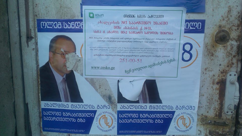კანდიდატის ოლეგ სანდოშვილის პლაკატი დაზიანებულია და