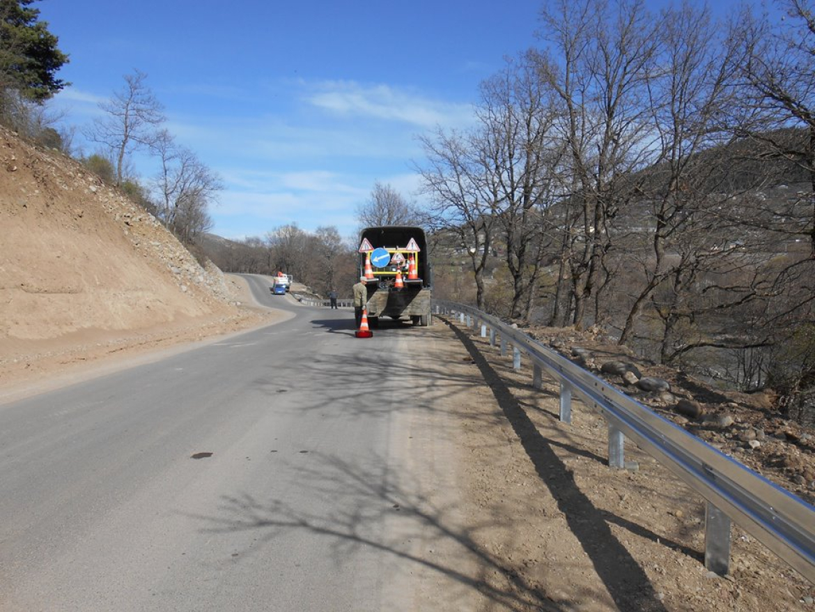 საფარის დაგება, ეწყობა გაბიონები, მილხიდები და უსაფრთხოების ბარიერები. ამასთან ერთად