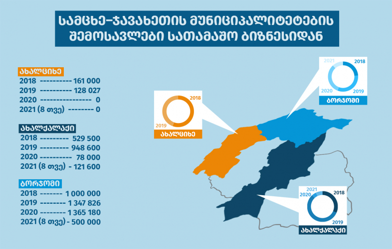 Ախալքալաքի քաղաքապետարանը նույնպես զգալի եկամուտ կորցրեց `փակելով խաղային բիզնեսը: Մինչ համաճարակը, վճարում էին քաղաքում գործող ութ ձեռնարկություններ: Ախալքալաքի քաղաքապետարանի տվյալներով ՝ 2019 թվականին բյուջեն ստացել է 948,000 լարի, իսկ 2020 -ին այդ ցուցանիշը կրճատվել է մինչև 78,000 լարի: