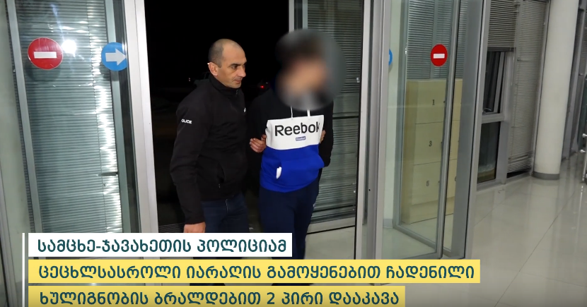 Ներքին գործերի նախարարության Սամցխե-Ջավախեթիի ոստիկանության բաժնի Ախալքալաքի շրջանային վարչության աշխատակիցները, անցկացրած օպերատիվ-հետախուզական գործողությունների արդյունքում ձերբակալել են 1954 թվականին ծնված Ս.Պ.-ին և 2001 թվականին ծնված Ա.Մ.-ին: Նրանք մեղադրվում են հրազենի օգտագործմամբ իրանակացրած խուլիգանության մեջ: