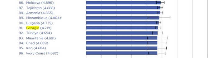 Վերջին ինդեքսի համաձայն, որը ընդգրկում է 2021-2023 թվականները, Վրաստանը աշխարհում զբաղեցնում է 91-րդ տեղը, մինչդեռ 2020-2022 թվականների հաշվետվության մեջ երկիրը 90-րդ տեղում էր։
