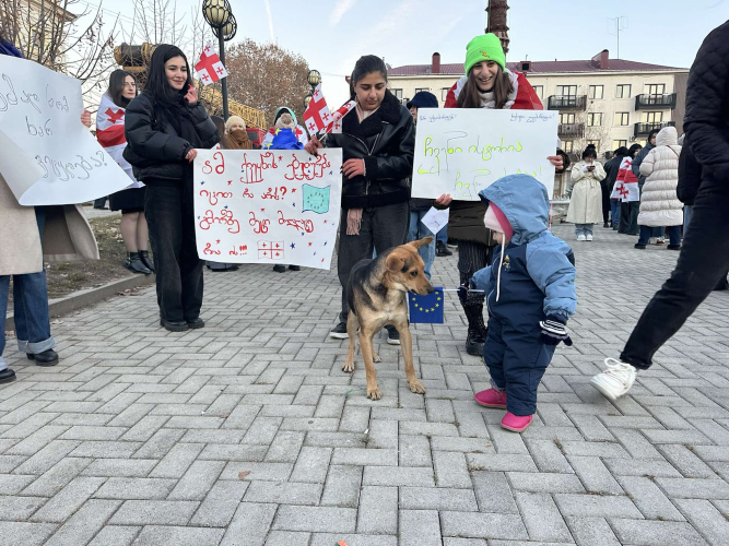 Ախալցիխեում արդեն չորրորդ օրն է, ինչ բողոքում են Վրաստանի արևմտյան կուրսից շեղումը։ Տեղացիները ամեն օր հավաքվում են Շոթա Ռուսթավելիի արձանի մոտ և բողոքի միջոցով աջակցություն են հայտնում մայրաքաղաքում անցկացվող ցույցի մասնակիցներին։