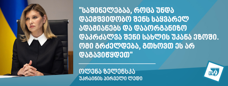 "ომი ჯერ არ დასრულებულა. საშინელებაა, როცა უნდა დაემშვიდობო საყვარელ ადამიანებს და დააორგანიზო დაკრძალვა შენი სახლის უკანა ეზოში. ომი გრძელდება, გთხოვთ ეს არ დაგავიწყდეთ" - თქვა ოლენა ზელენსკამ.
