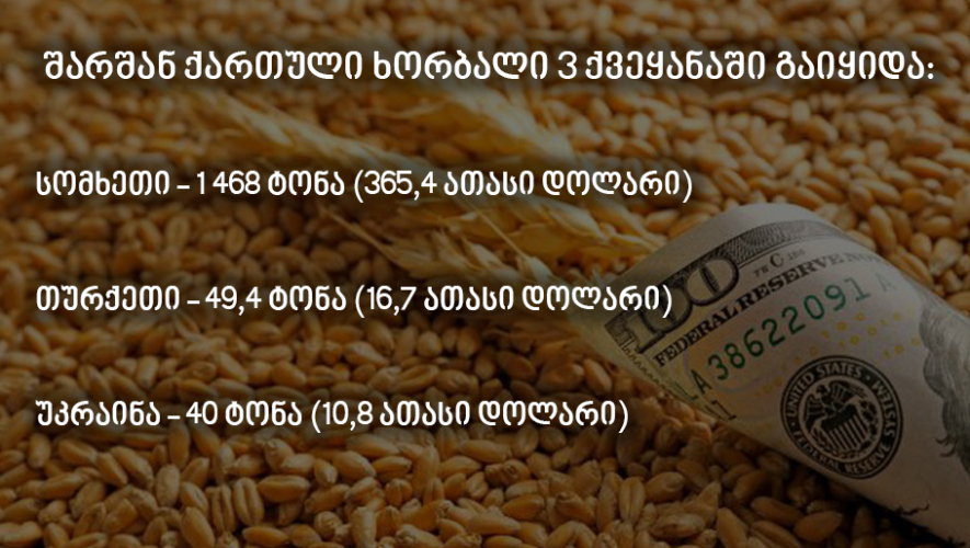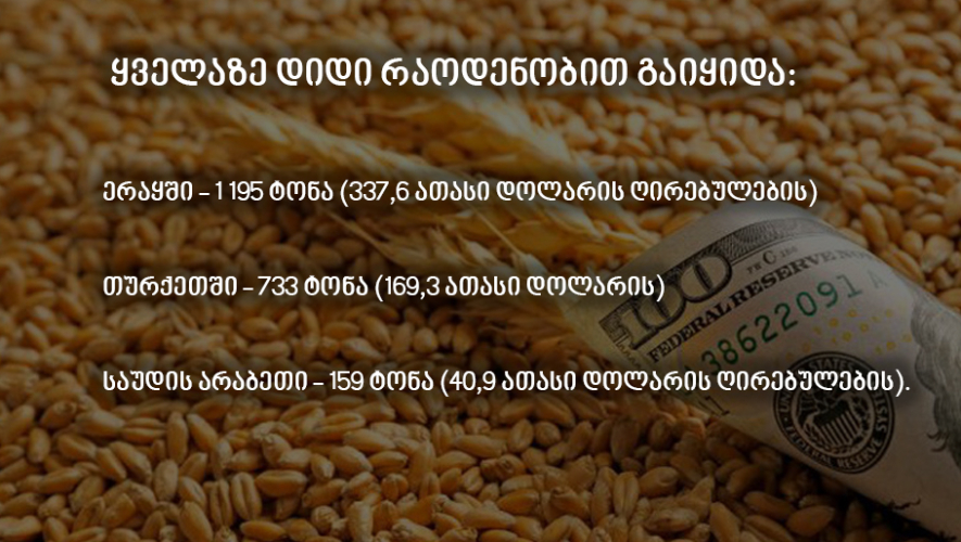 Ինչ վերաբերում է տեղական ցորենի արտահանմանը, ապա անցյալ տարի վրացական ցորենը վաճառվել է 3 երկրներում.