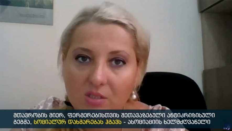 მთავრობის მიერ, ფერმერებისთვის შეთავაზებული ანტიკრიზისული გეგმა, ერთჯერად, სოციალურ დახმარებას ჰგავს - ამბობს ასოციაცია “მომავლის ფერმერის” ხელმძღვანელი. რუსუდან გიგაშვილის თქმით, შეღავათების შესახებ ფერმერები ინფორმირებულნი არ არიან.