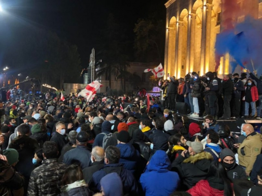 შეზღუდვის მიუხედავად, აქციის მონაწილეები პარლამენტთან რჩებიან