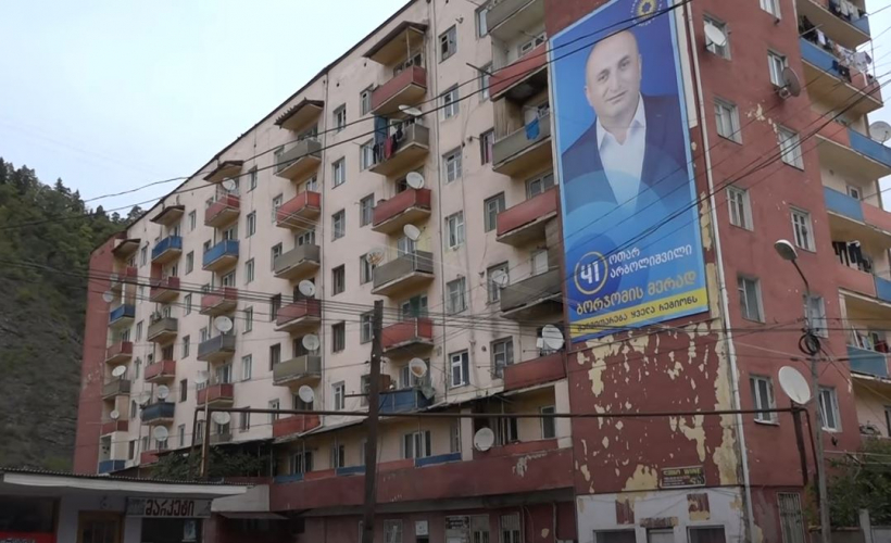 ბორჯომში, საარჩევნო უბანთან ,,ქართული ოცნების" მერობის კანდიდატის ბანერი არ ჩამოხსნეს