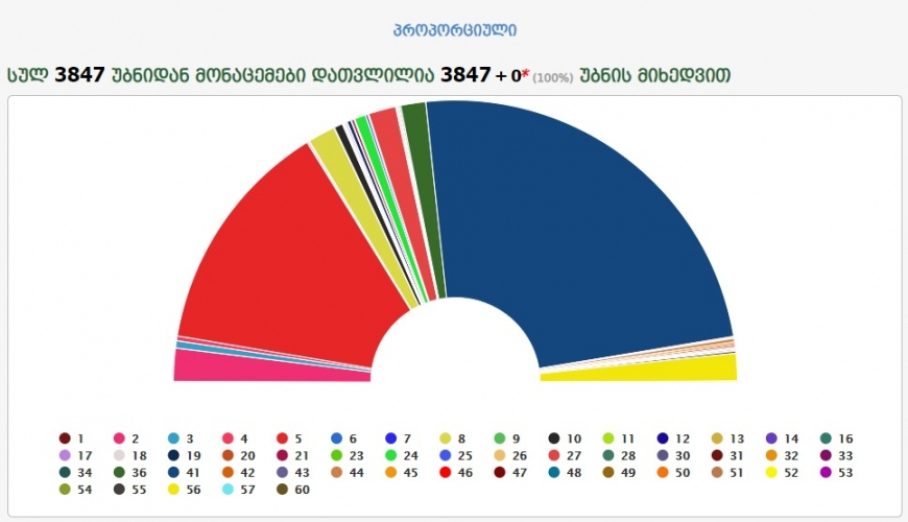 ცენტრალური საარჩევნო კომისიის მიერ ამ ეტაპზე დათვლილია 3 847-ვე საარჩევნო უბანი.