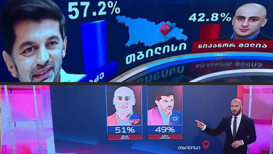ტელეკომპანია „მთავარის“ დაკვეთით კომპანია „ანოვას“ მიერ ჩატარებული ეგზიტპოლის 18:00 საათის მონაცემების მიხედვით, თბილისში „ქართული ოცნების“ მერობის კანდიდატს კახა კალაძეს ამომრჩეველთა 49%-მა მისცა ხმა, ხოლო ოპოზიციის ნაწილის კანდიდატს ნიკა მელიას - 51%-მა.