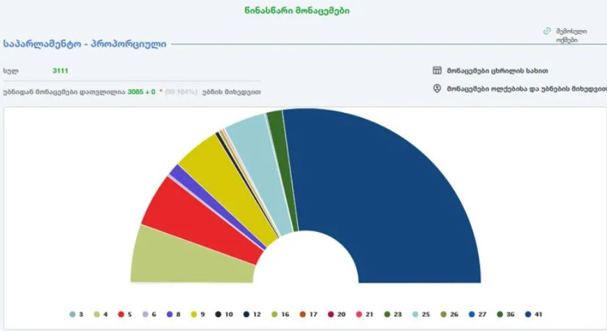 „ქართული ოცნების“ მხარდაჭერა 54.273 %-ს შეადგენს