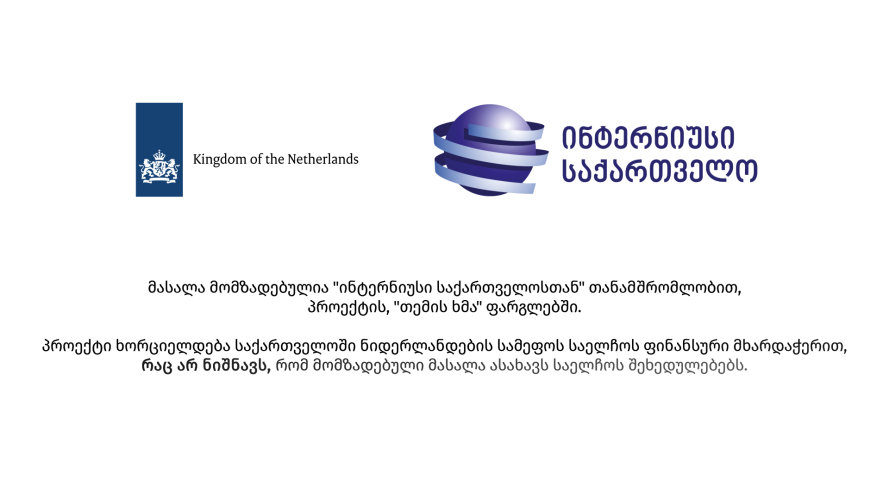 ავტორის/ავტორების მიერ საინფორმაციო მასალაში გამოთქმული მოსაზრება შესაძლოა არ გამოხატავდეს "საქართველოს ღია საზოგადოების ფონდის" პოზიციას. შესაბამისად, ფონდი არ არის პასუხისმგებელი მასალის შინაარსზე.