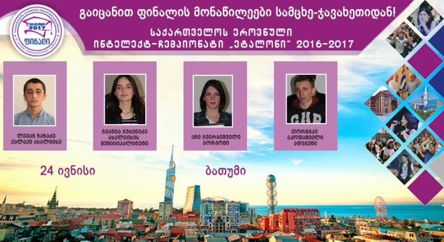 24 ივნისს საქართველოს ეროვნული ინტელექტ-ჩემპიონატის ''ეტალონის'' 2016-2017 სასწავლო წლის ფინალი გაიმართება.