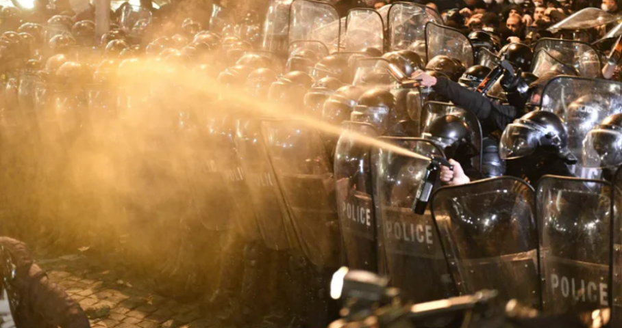 პარლამენტის შენობასთან, სადაც საპროტესტო აქცია მიმდინარეობს წყლის ჭავლი გაუშვეს.