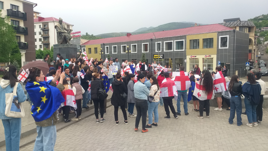 ახალციხეში, რუსთაველის ძეგლთან, 1-ლ მაისს, საზოგადოებრივი ორგანიზაციებისა და მედიის წარმომადგენლები შეიკრიბნენ. არა რუსულ კანონს - ეს იყო აქციის მონაწილეთა მთავარი მოთხოვნა.