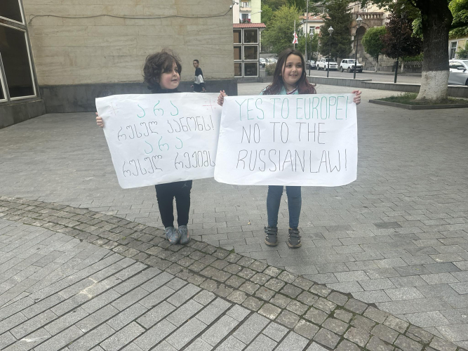 არა რუსულ კანონს, ვიცით თქვენი ,,გამჭვირვალობა" - ბორჯომში რუსული კანონის წინააღმდეგ აქცია გაიმართა. აქციის ყველაზე პატარა მონაწილე ორი თვის იყო.