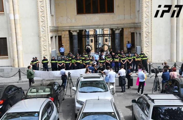 პარლამენტის შენობის შესასვლელებთან საპროტესტო აქცია მიმდინარეობს