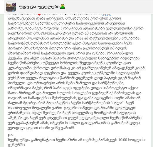 გავრცელებული ვიდეომიმართვით ირკვევა, რომ გადაწყვეტილება მუსლიმმა თემმა, სოფელ ჭელაში გამართულ შეხვედრაზე ცხარე დისკუსიის შედეგად მიიღო.