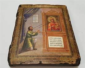 ,,ეს ხატი იმყოფებოდა ერთი ცოდვილის სახლში. ის არ ღალატობდა ჩვეულებას და ყოველდღიურად მის წინაშე მთავარანგელოზის სიტყვებით ლოცულობდა: "გიხაროდენ, სახარულევანო". ერთხელ საშინელი უსჯულოების ჩასადენად რომ მიდიოდა, ღვთისმშობლის ხატისკენ მიბრუნდა, რათა წასვლამდე მის წინაშე ელოცა და თავზარი დაეცა - ხატი ადგილზე იძვროდა. ღვთისმშობელი და მის ხელში ყრმა გაცოცხლდნენ: ყრმა ღმერთს ხელებზე, ფეხებსა და ფერდზე ჭრილობები გახსნოდა და სისხლი ნაკადულად ჩამოსდიოდა, ისევე როგორც ჯვარზე ვნებისას. როდესაც კაცმა ყოველივე ეს იხილა, შიშით შეჰღაღადა: "ჰოი, დედოფალო, ვინ ჩაიდინა ეს?"