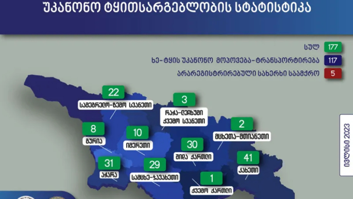 „უკანონო ტყითსარგებლობის ყველაზე მეტი - 41 ფაქტი გამოვლენილია კახეთში; 31 ფაქტი დაფიქსირდა აჭარაში, შიდა ქართლში - 30, სამცხე-ჯავახეთში - 29, სამეგრელო-ზემო სვანეთში - 22, იმერეთში - 10, გურიაში - 8, რაჭა-ლეჩხუმი-ქვემო სვანეთში - 3, მცხეთა-მთიანეთში - 2, ქვემო ქართლში - 1. ჯამში, ამოღებულია უკანონოდ მოპოვებული 239 კუბურ მეტრზე მეტი მოცულობის ხე-ტყე.