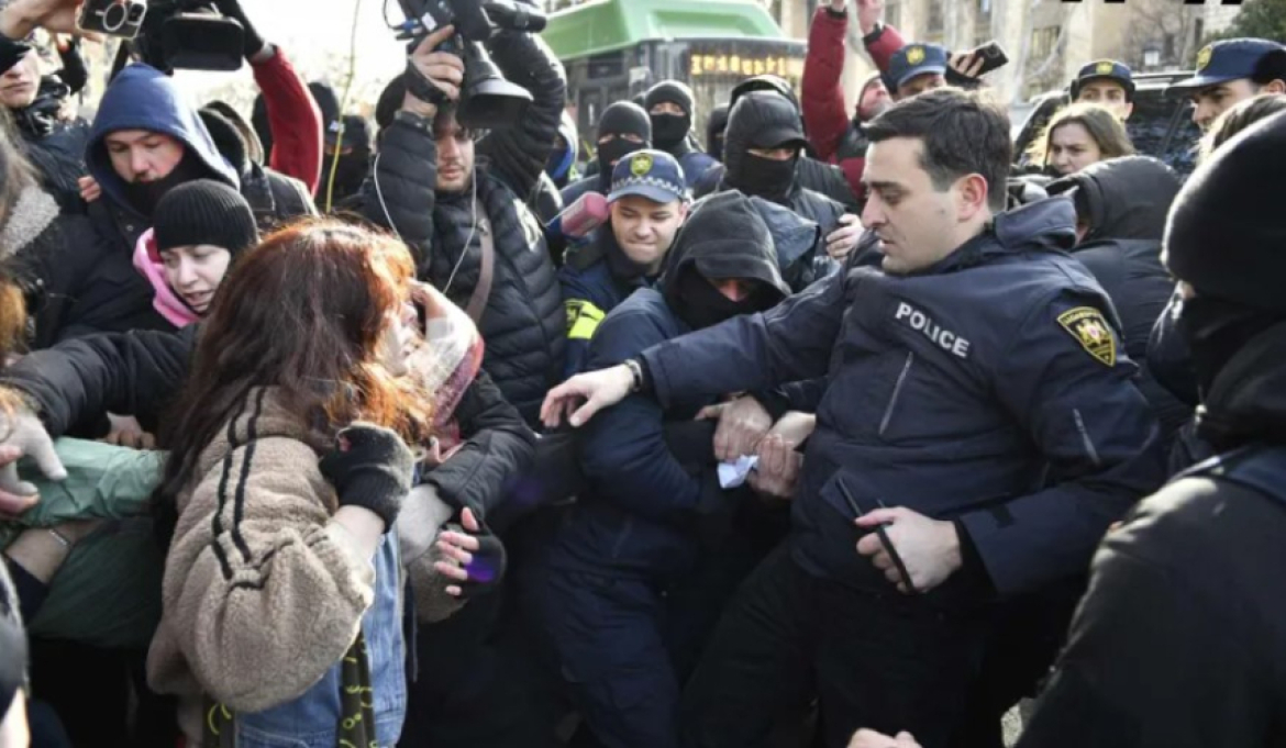 რუსთაველის გამზირზე, აქციის მონაწილეებსა და პოლიციას შორის შეხლა-შემოხლაა. პოლიცია აქციის მონაწილეებს ძალის გამოყენებით აკავებს.