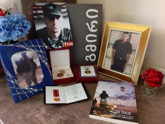„ცხედარი ჩემმა მაზლმა ამოიცნო, ჯიბეში საბუთები ედო. მიცვალებული არ გვინახავს, დალუქული იყო. მისი სახეც რომ ვერ ვნახეთ, ეს საშინელებაა. თავი, მკლავი, ფეხი არ ჰქონდა, კასეტურმა ბომბმა სხეული დაუნაწევრა. ჩვენთვის ესეც ბედნიერებაა, რომ საფლავი გვაქვს. მამამისმა წელიწადიც ვერ გაუძლო, ცხედარი რომ მოასვენეს გულის ინფარქტი მიიღო, ცხრა თვე ძლივს ვაცოცხლეთ წამლებით. თამაზის წლისთავი და მამამისის ორმოცი ერთად გადავიხადეთ“, - გვიყვება თეა.