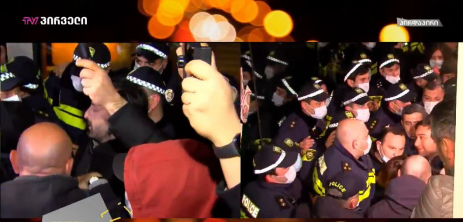 რუსმა პროპაგანდისტმა ვლადიმერ პოზნერმა და მისმა თანხმლებმა პირებმა პროტესტის ფონზე, პოლიციელების კორდონის მეშვეობით, რესტორანი ვინოტელი დატოვეს.