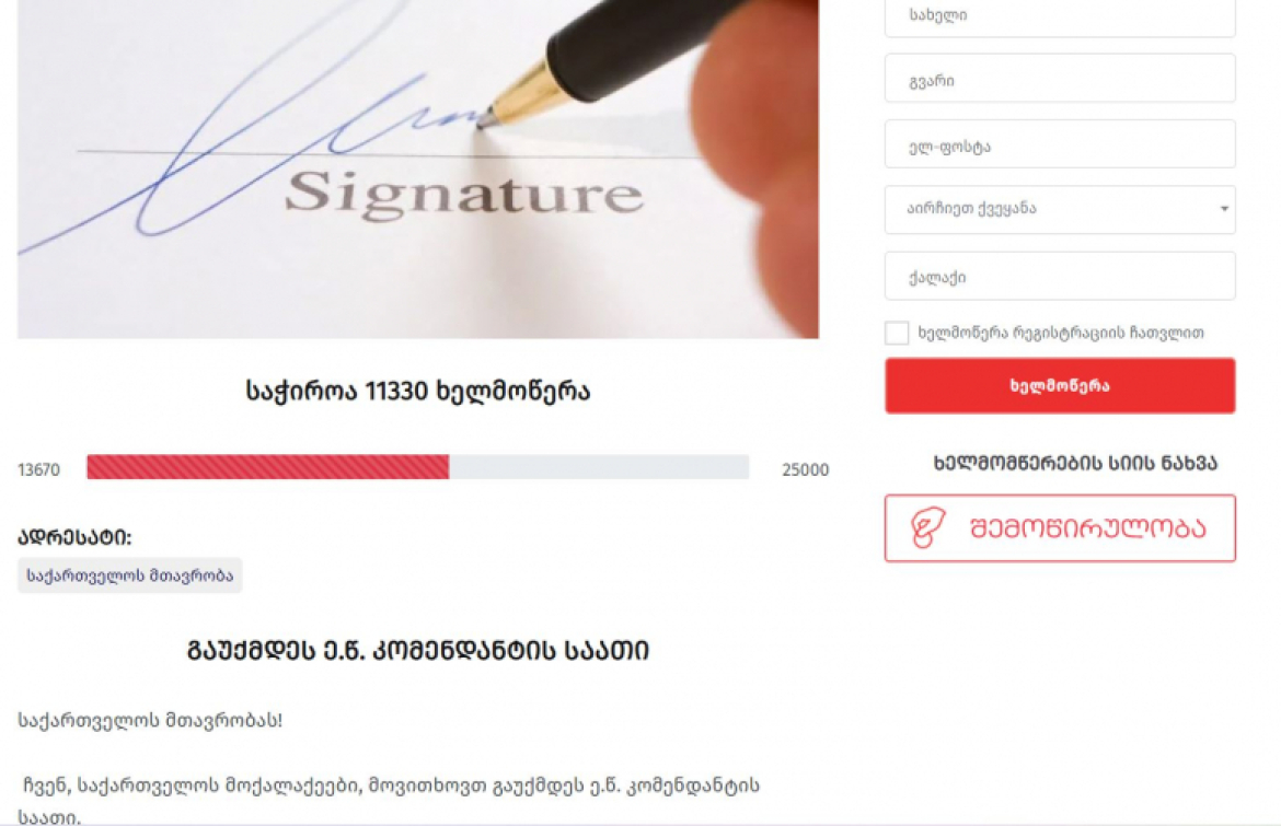 კომენდატის საათის გაუქმების მოთხოვნას 13 000-ზე მეტმა მოქალაქემ მოაწერა ხელი