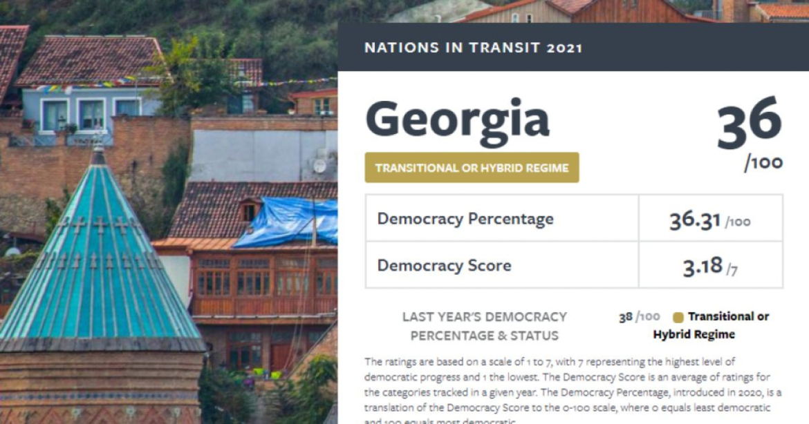 საერთაშორისო ორგანიზაცია Freedom House ყოველწლიურ ანგარიშს აქვეყნებს. ანგარიშის მიხედვით, საქართველოს მაჩვენებლები დემოკრატიის კუთხით გაუარესდა. საქართველოს, Freedom House გარდამავალი ან ჰიბრიდული რეჟიმის კატეგორიას ანიჭებს. გასულ წელს 100-დან 38 ქულა ჰქონდა, წელს კი ამ მაჩვენებელმა 2 ქულით დაიკლო და ახლა 36-ს შეადგენს.