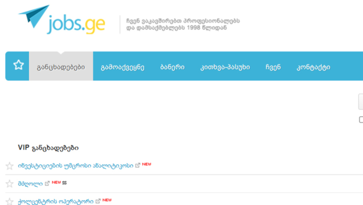 jobs.ge-ზე ვაკანსიების რაოდენობა გაიზარდა