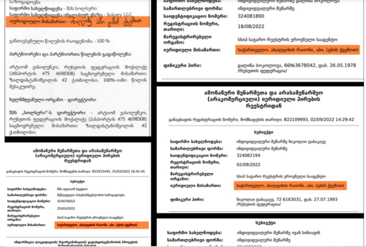 ოფიციალური მონაცემებით, 24 თებერვლის შემდეგ ყოველთვიურად საქართველოში დაახლოებით 2 000 ახალი ბიზნესსუბიექტი რეგისტრირდება რუსეთის მოქალაქეების მიერ. უკრაინაში ომის დაწყების შემდეგ საქართველოში რეგისტრირებული რუსული წარმოშობის ბიზნესების რიცხვი 11 ათასს აჭარბებს. რეგისტრაციის დოკუმენტაციის შესწავლა აჩვენებს, რომ რუსეთის მოქალაქეები საქართველოში კომპანიის რეგისტრაციისას ან ინდივიდუალური მეწარმის სტატუსის მისაღებად მასობრივად იყენებენ ფიქტიურ მისამართებს და ტელეფონის ნომრებს. რადიო ,,თავისუფლების" მიერ მომზადებული მასალის მიხედვით, 15 აგვისტოს შემდეგ რუსეთის მოქალაქეების მიერ დარეგისტირებული ბიზნესების ნახევარზე მეტი, 2 288, თბილისზე მოდის. რეგიონებიდან ყველაზე მეტი რუსული ბიზნესი ბოლო თვეებში სამცხე-ჯავახეთში, აჭარასა და ქვემო ქართლში გაჩნდა.