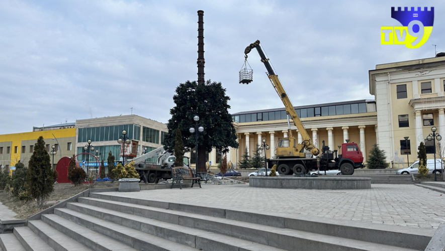 ახალციხეში მთავარი ნაძვის ხის დემონტაჟი მიმდინარეობს