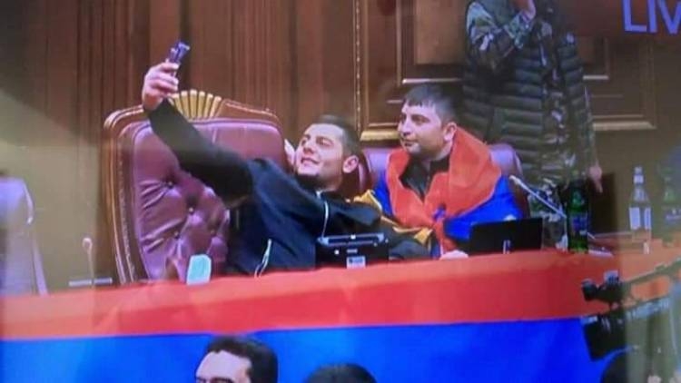 Հ.Գ. Ավելի ուշ պարզվեց, որ ԱԺ նախագահի աթոռին նստած ծխող տղան ողջ է։ Մահացած գտել են նրա կողքին կանգնած՝ դրոշով փաթաթված երիտասարդին։