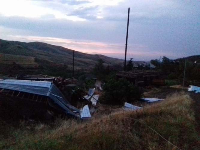 Տավուշի մարզպետի խորհրդականի հրապարակած լուսանկարներում երևում են կոտրված տանիքներն ու արմատախիլ եղած ծառերը։