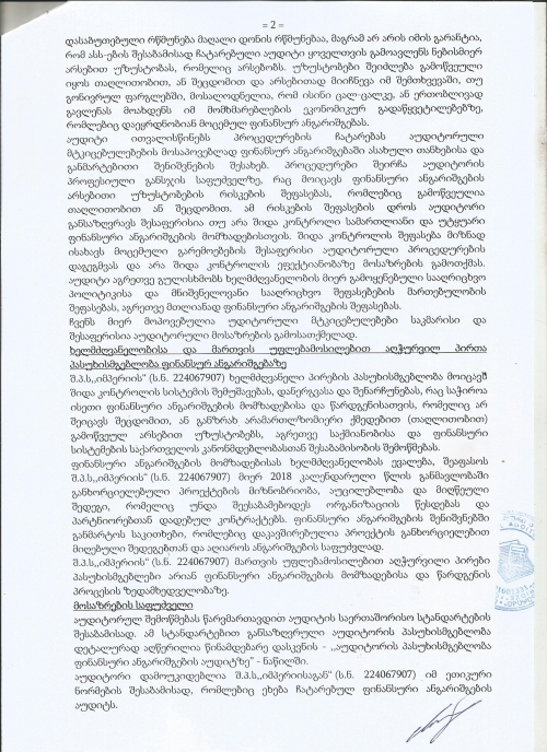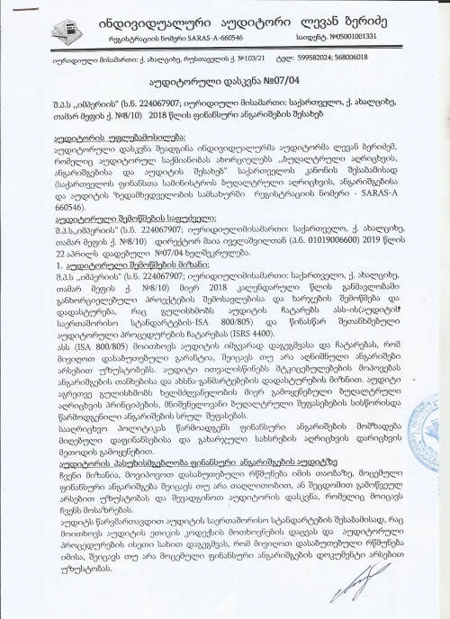 აუდიტორული დასკვნა 2018