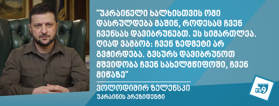 უკრაინელი ხალხისთვის ომი დასრულდება მაშინ, როდესაც ჩვენ ჩვენსას დავიბრუნებთ - ზელენსკი