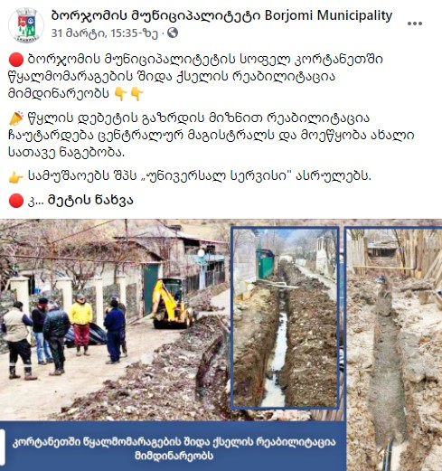 Արդեն երկու օր հասարակայնության հետ կապերի վարչությունից փորձում ենք պարզել, թե ինչպես է Բորջոմիի ինքնակառավարումը ներգրավված տեղեկատվական քարոզարշավում: PR՝ Նինի Ջիքուրաշվիլին խոստացավ պարզաբանել հարցը, բայց դրանից հետո նա չի պատասխանում մեր հեռախոսազանգերին և կարճ տեքստային հաղորդագրություններին: