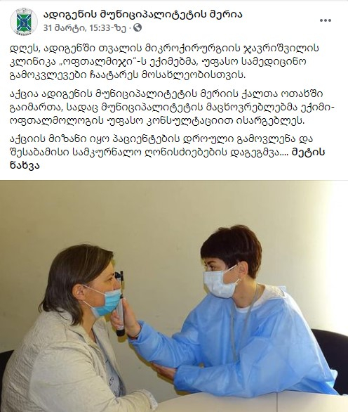Նույն թեմայի մասին կարելի է կարդալ նաև ֆեյսբուքյան էջում, որտեղ գրառումները հիմնականում վերաբերում են քաղաքապետարանի գործունեությանը: Սոցիալական ցանցը որոնում է կորոնավիրուսի վերաբերյալ մի քանի նյութեր, որոնք Վրաստանի կառավարության էջից տարածել է Քաղաքապետարանի ֆեյսբուքյան էջը:
