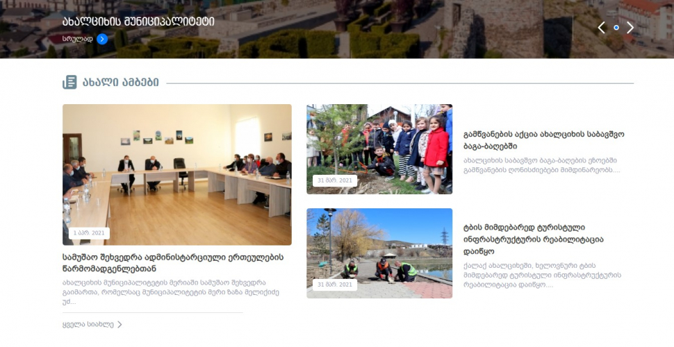 Քաղաքապետի աշխատանքային հանդիպումներն անձնակազմի հետ, կանաչապատման միջոցառումները, ենթակառուցվածքային նախագծերը, շենքերի վերականգնումը - հիմնականում, այս բովանդակության նյութերը կգտնեք Ախալցիխեի քաղաքապետարանի՝ akhaltsikhe.gov.ge կայքում: Պատվաստումների վերաբերյալ տեղեկատվություն չկա, իսկ կորոնավիրուսի մասին գրված է հիմնականում քաղաքապետարանի կողմից վիրուսի տարածումը կանխելու միջոցառումների մասին: