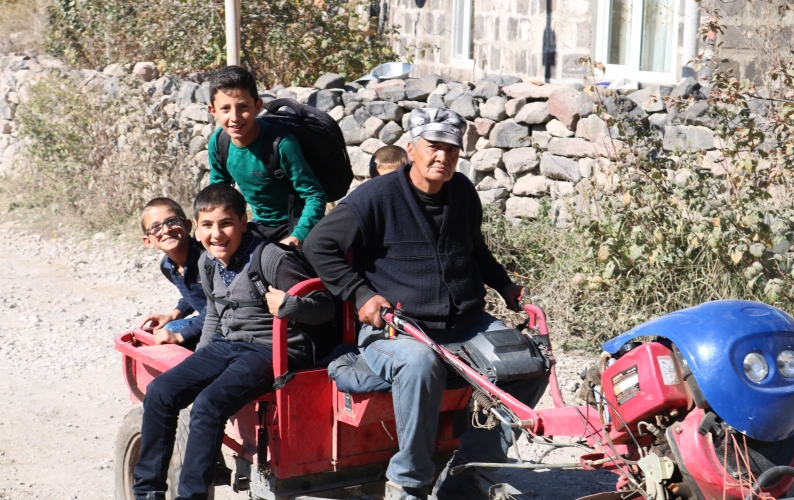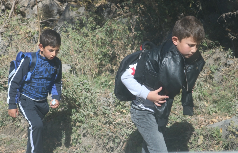 სკოლიდან სახლში ბავშვების ნაწილი ფეხით დაბრუნდა, ნაწილი კი თანასოფლელს ტრაქტორზე დაემგზავრა. მაღალმთიან სოფელში ასულ უცხო ადამიანებს ინტერესით გვათვალიერებენ.