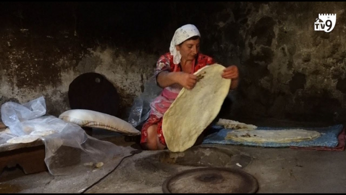 წინა დღეს ამოყვანილი ყველი თასში ჩასრისა, მერე ორი გუნდიდან ერთ-ერთი გააბრტყელა და ყველიანი ცომი ცხელ ღუმელში შედო.